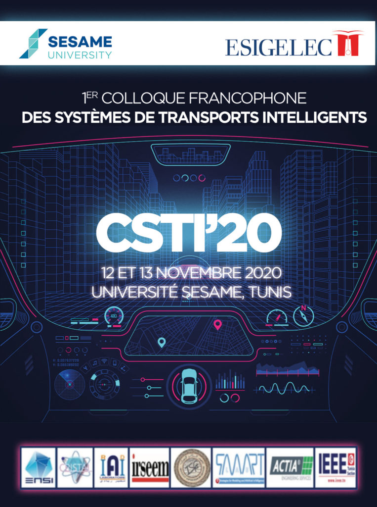 Dans sa première édition ce colloque, co-organisé, par l’Université Sésame et l’Esigelec de Rouen en partenariat avec l’ENSI (Laboratoires Cristal, Riadi), l’ISG (Smart Lab), ACTIA Engineering Services, et l’IEEE section Tunisie, sous le patronage du Ministère du Transport et de la Logistique, vise donc à réunir des scientifiques, des experts Tunisiens, Français ainsi que des acteurs de l’innovation et de l’industrie du secteur du transport. CSTI’20 permettra aux participants d’échanger sur les toutes dernières recherches et avancées dans le domaine des transports intelligents et leur intégration pratique dans les réseaux de transport. Il ambitionne de contribuer à la mise en place d’un espace d’échange d’expériences en matière de recherche scientifique et technologique, de formation et de transfert technologique.